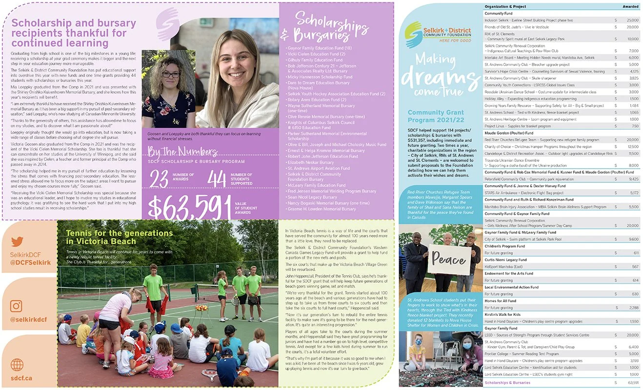 Layouts from community-friendly annual report (5 letter-sized pages)